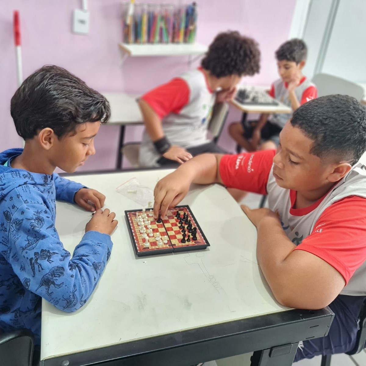- Atender 3 vezes por semana alunos inscritos no projeto, 2 vezes com aulas de Xadrez e uma vez com aulas de jogos colaborativos.